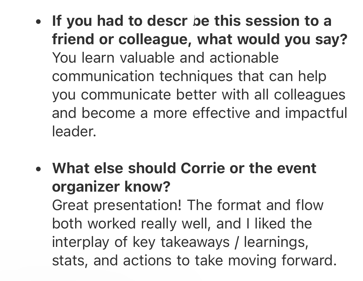 Hi, I’m Corrie LoGiudice— a former SVP turned professional speaker and leadership coach, with 15+ years of corporate experience leading high-stakes conversations.